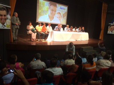“No futuro, eu quero me orgulhar de não ter contribuído com essa falcatrua que está destruindo o País”, disse emocionada a ministra Eliana Calmon ao afirmar que estava com “as mangas arregaçadas para ir às ruas defender o nome de Aécio Neves à Presidência da República”. “Falo isto como cidadã e avó de dois netos que quer vê-los vivendo no Brasil”. Ao fim do discurso, a magistrada baiana foi aplaudida de pé pela plateia, que lotou o Teatro da CDL, na noite de segunda-feira (13), durante o lançamento do movimento “Feira com Aécio”, promovido por um grupo de profissionais da área de saúde de Feira de Santana. O evento contou com as presenças do prefeito José Ronaldo, dos deputados federais eleitos, José Carlos Aleluia, Antonio Imbassahy e Irmão Lázaro, os estaduais Targino Machado e Carlos Geílson, além do parlamentar Colbert Martins. Para Eliana Calmon, que decidiu, aos 69 anos, deixar a situação de conforto da magistratura para candidatar-se ao Senado, a convite de Eduardo Campos e Marina, “a democracia corre perigo, quando não há alternância política e a corrupção corre nas entranhas do poder”. “Apoio Aécio para que se estabeleça no Brasil uma democracia digna e se combata a corrupção sem tréguas”. O prefeito José Ronaldo lembrou da vitória de ACM Neto, em 2012, quando, no segundo turno, ele viu nas ruas a mobilização de várias pessoas que nunca participaram da política, fazendo campanha contra o PT. “Vamos seguir este exemplo agora em Feira para eleger Aécio”, afirmou o prefeito.